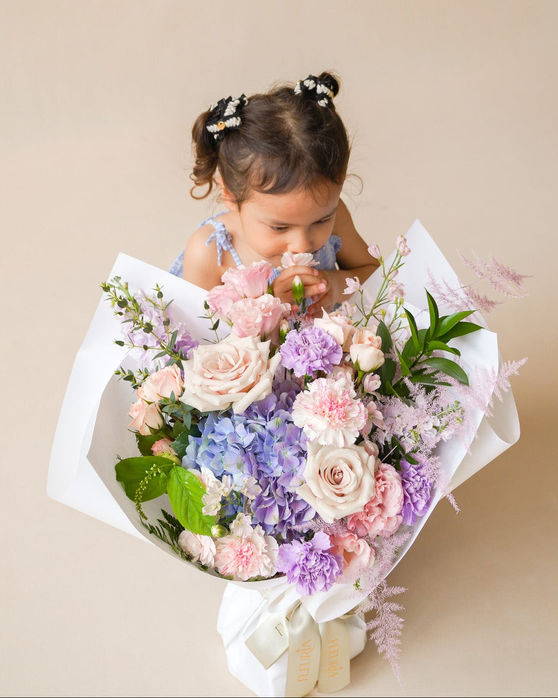 Capture her heart with this sophisticated blend of periwinkle hydrangeas and dusty nude roses. Accented by delicate lisianthus and feathery astilbe, Twilight Lullaby's cool-toned arrangement offers a calm, poetic elegance.